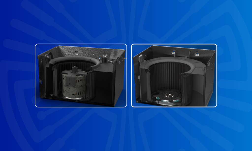 - ECM solution reduces motor height from 2.8” to 0.6”